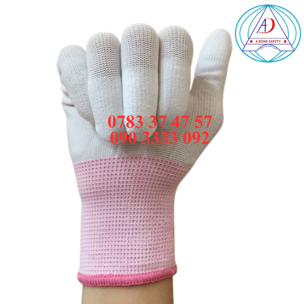 Cấu tạo và công nghệ sản xuất găng tay phủ ngón PU viền hồng chống tĩnh điện: